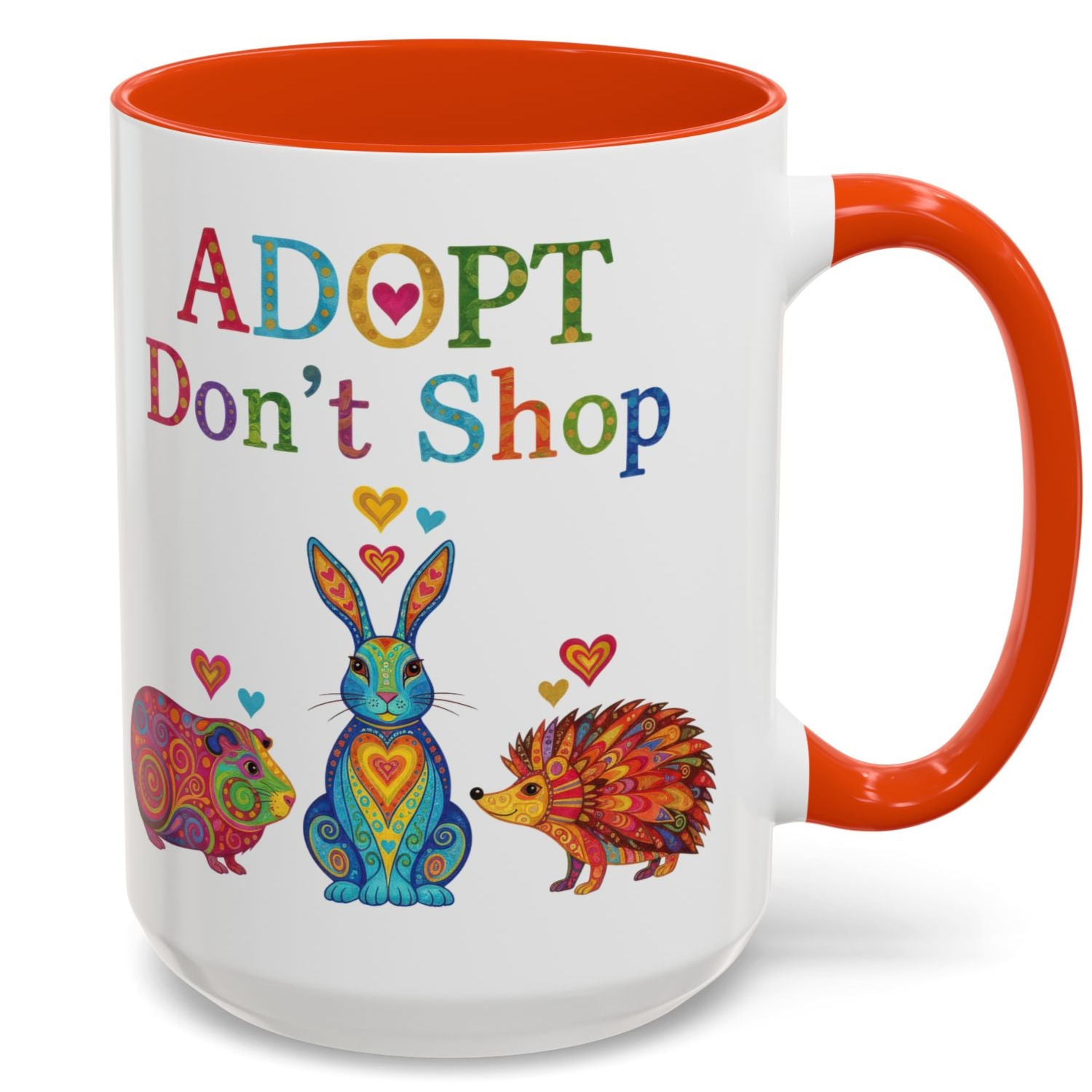 Celebrate the ones who make adoption possible. This cheerful, high-color mug is a heartfelt way to thank foster families, rescue volunteers, and shelter staff who dedicate their time to saving lives. Featuring a vibrant guinea pig, rabbit, and hedgehog, it’s a joyful reminder that love multiplies when shared.