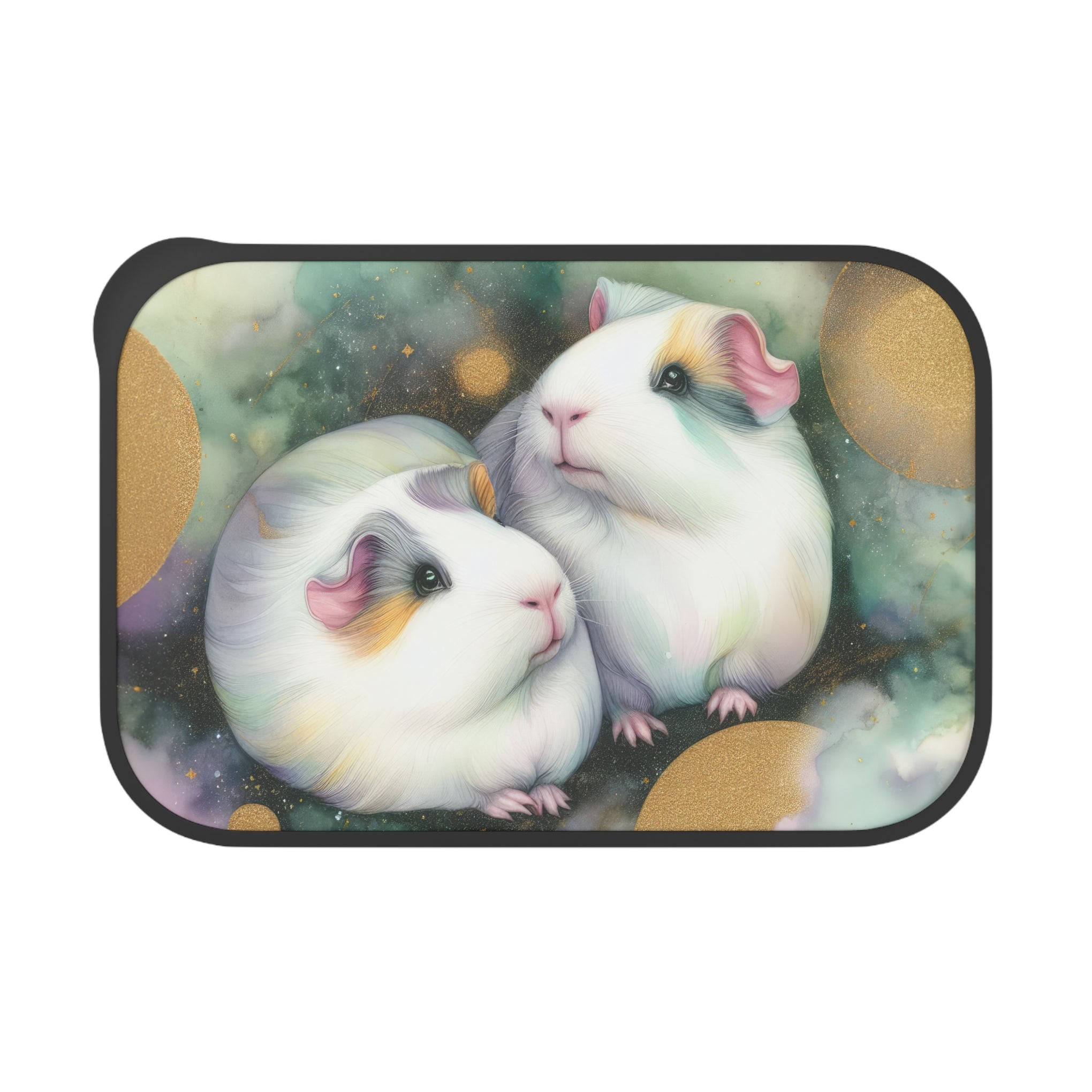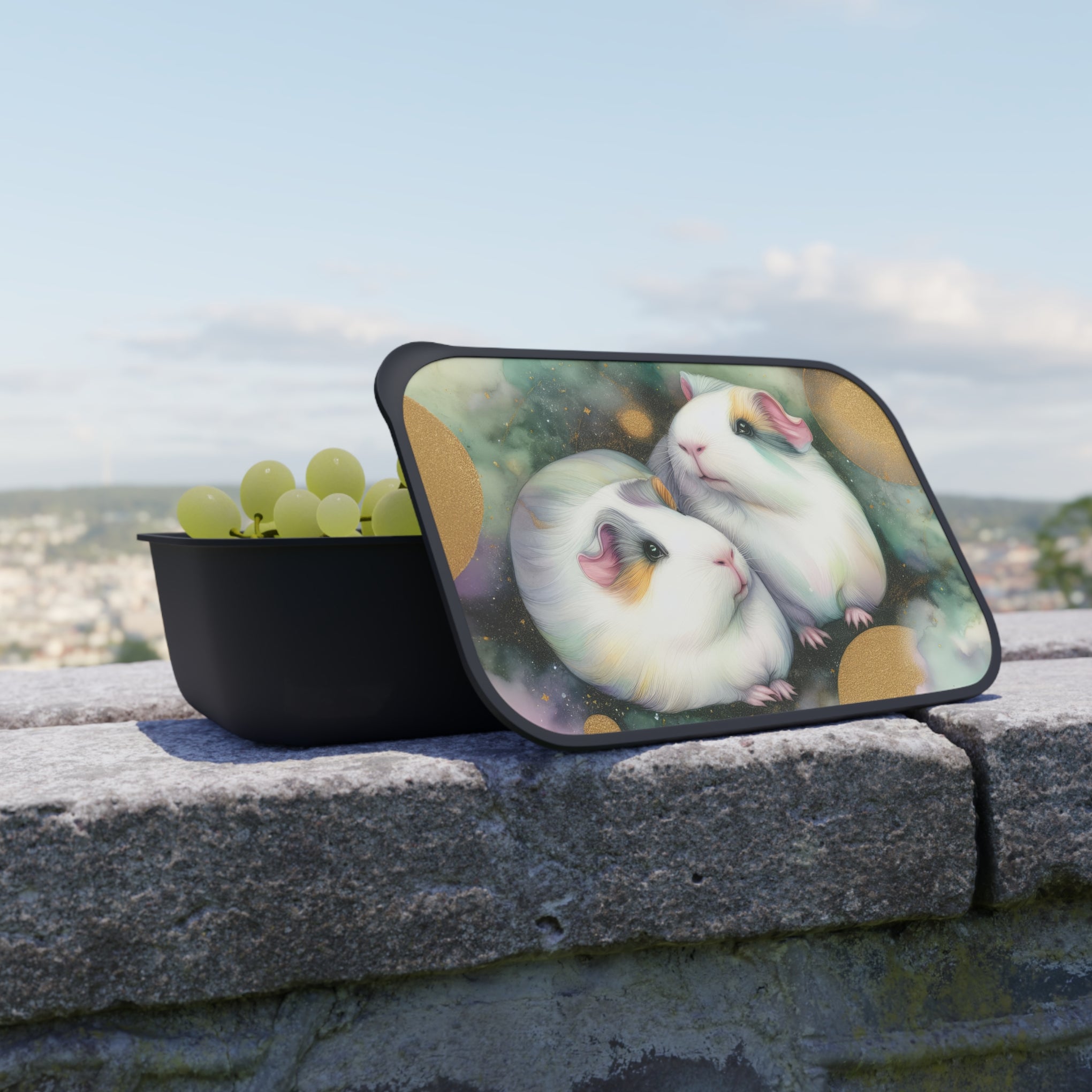 This guinea pig lunch box is perfect for those who want to store their food in style. With vibrant colors and a stipple print texture, this eco-friendly lunch box is made from 100% black PLA bioplastic. It comes with a rubber band and PLA bioplastic utensils, making it a fun and functional accessory for your daily meals. Not suitable for liquids or microwaving, hand wash recommended.