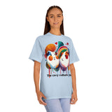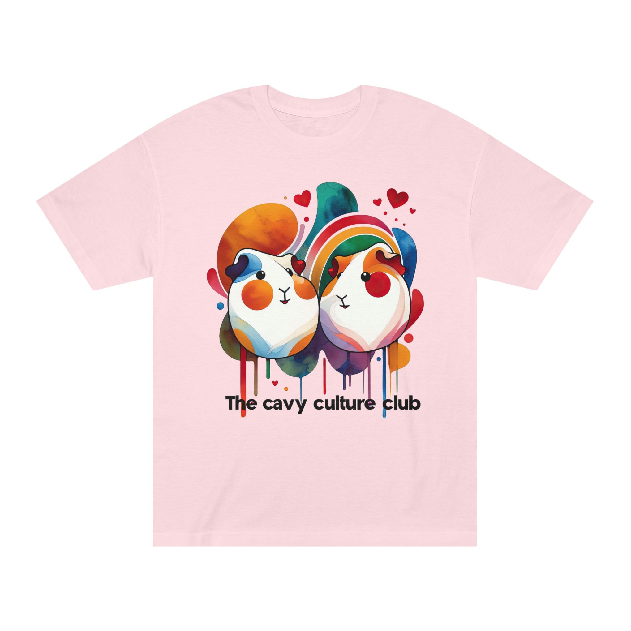 Soft, wearable art for anyone who loves small companions. This classic tee features a vibrant, watercolor-style print of two affectionate guinea pigs—bubbly colors, playful drips, and tiny hearts that give the design warmth and personality. The medium-weight cotton hold keeps the print crisp while the classic fit sits comfortably for lounging at home, heading to a casual meetup, or volunteering at a rescue. It reads like a quiet declaration of care: cozy, creative, and proudly animal-friendly.