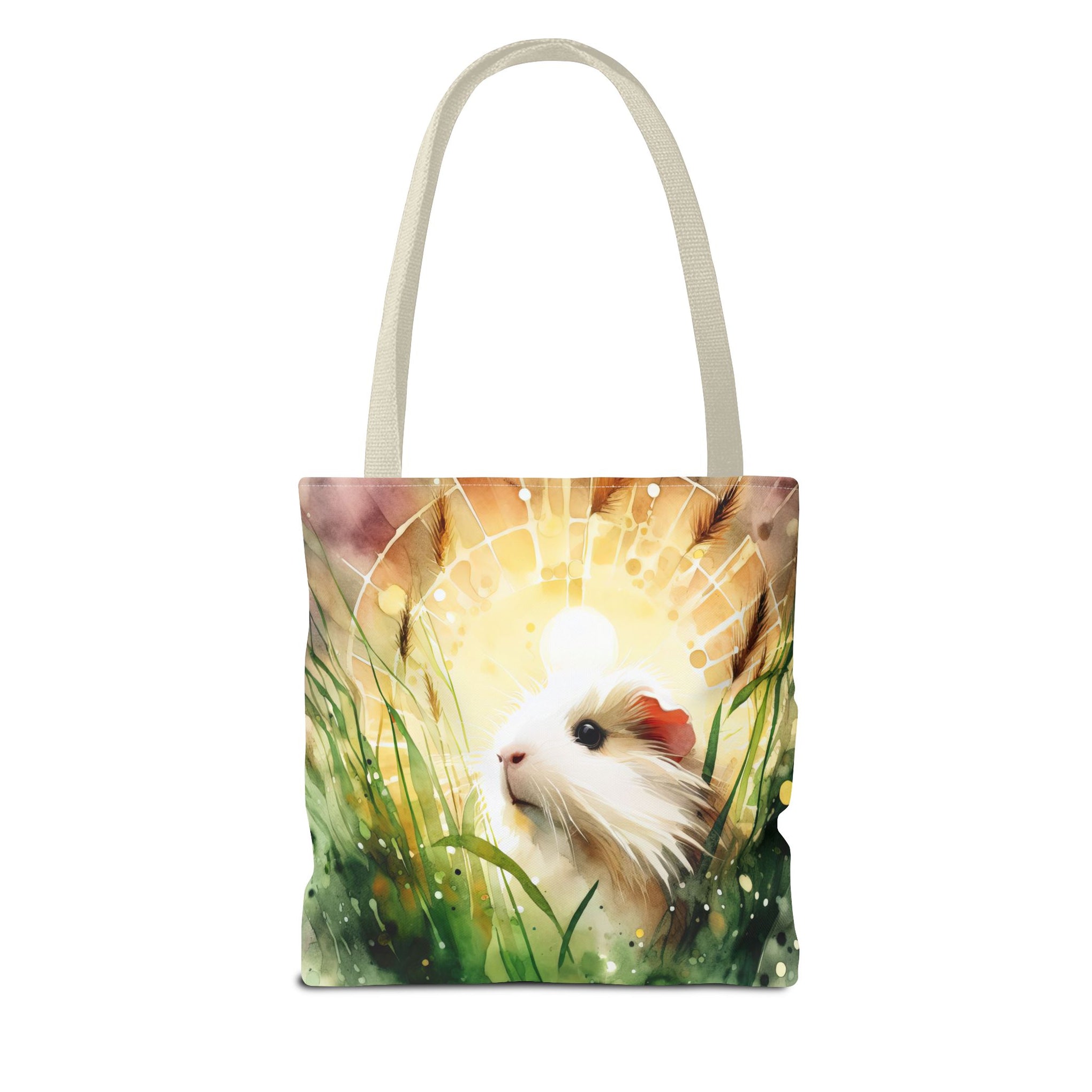 Introducing a beautifully crafted tote bag perfect for animal lovers and eco-conscious shoppers alike. This tote blends functionality with whimsical design, featuring a charming illustration of a guinea pig surrounded by lush greenery and soft colors. Its delightful vibe and artistic touch make it a versatile accessory that can effortlessly accompany you on a trip to the farmer's market, a relaxing day at the park, or while running errands. Ideal for anyone looking to express their love for pets, this bag is perfect for birthdays, holidays, or just as a special treat for yourself or a friend. Embrace everyday adventures with this stylish and practical tote!